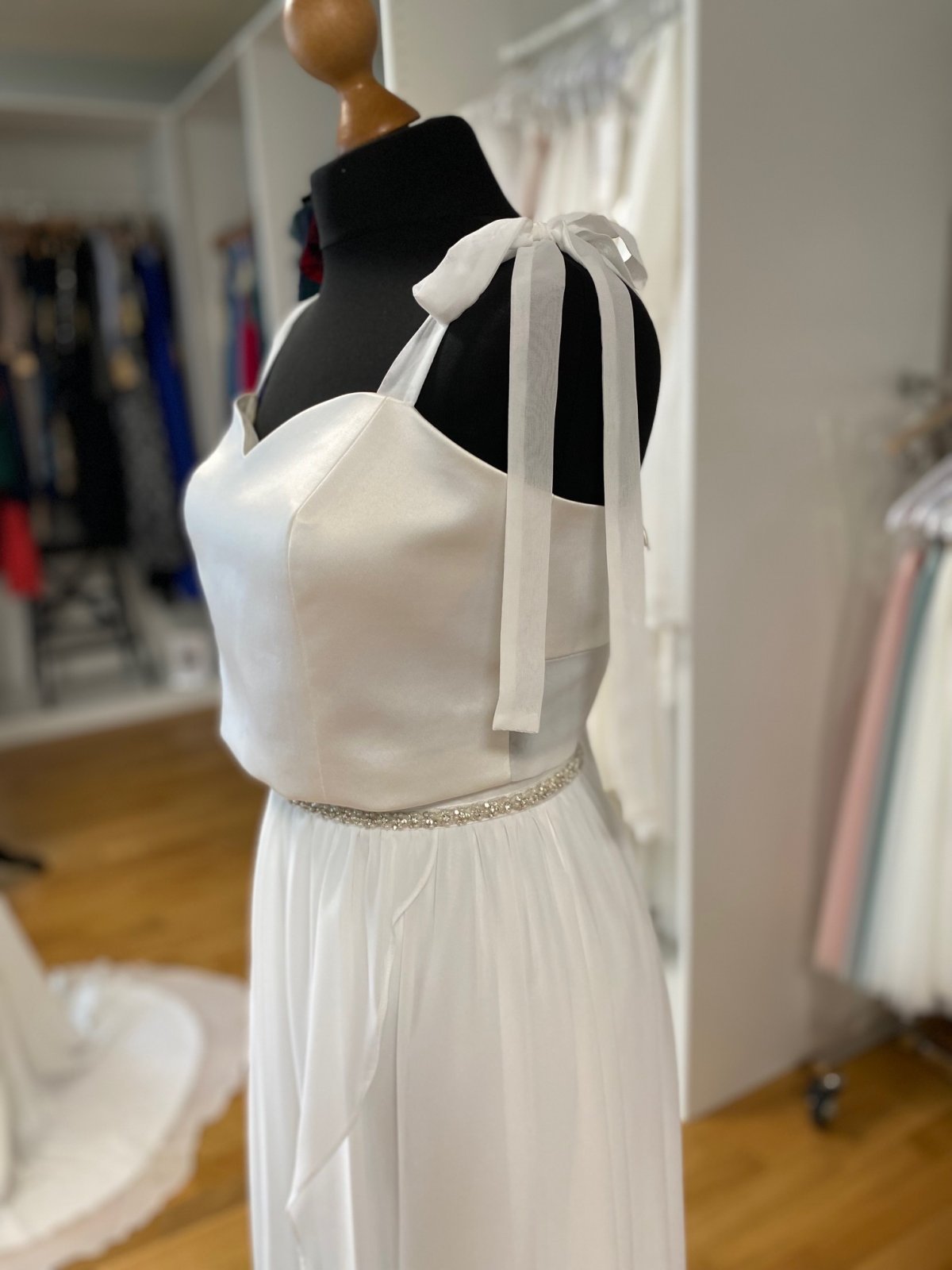 Entdecke die Magie der Individualität mit meinen Mixed and Match Brautkleidern! Gestalte deinen einzigartigen Look, indem du Oberteile und Röcke nach deinem Stil kombinierst. Bei mir findest du die perfekte Balance zwischen Eleganz und persönlichem Ausdruck. Lass deinen Traum von einem maßgeschneiderten Brautkleid Wirklichkeit werden!